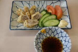 ・揚げ油の温度は180℃くらいにしておき、最初にししとうを素揚げにする。