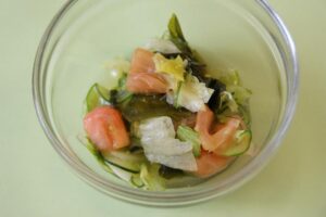・乾燥わかめは水で戻してから茹でこぼしておく。