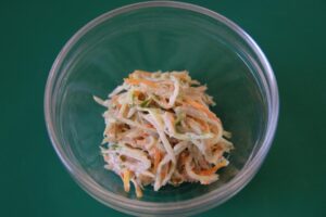 ・胡瓜は千切りにして30分以上水に浸けておく。